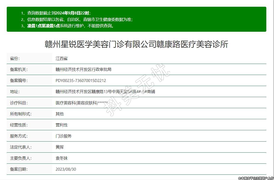 赣州星锐医学美容门诊部成立于2023年,位于赣州章贡区黄金岭街道赣康路中海天玺A4~A5号,是一家集生活美容、专业皮肤科美容的现代化轻医美机构,引进先进的医疗设备,坚持以人为本,服务至上,本着“诚信、安全、专业、关爱“的经营理念。致力于为客户真正的解决肌肤问题,传播科学的护肤知识,打造专业的抗衰效果。