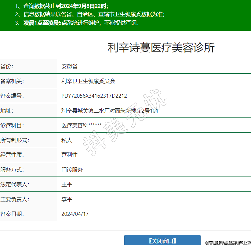 利辛诗蔓医疗美容诊所,诊疗科目:医疗美容科******