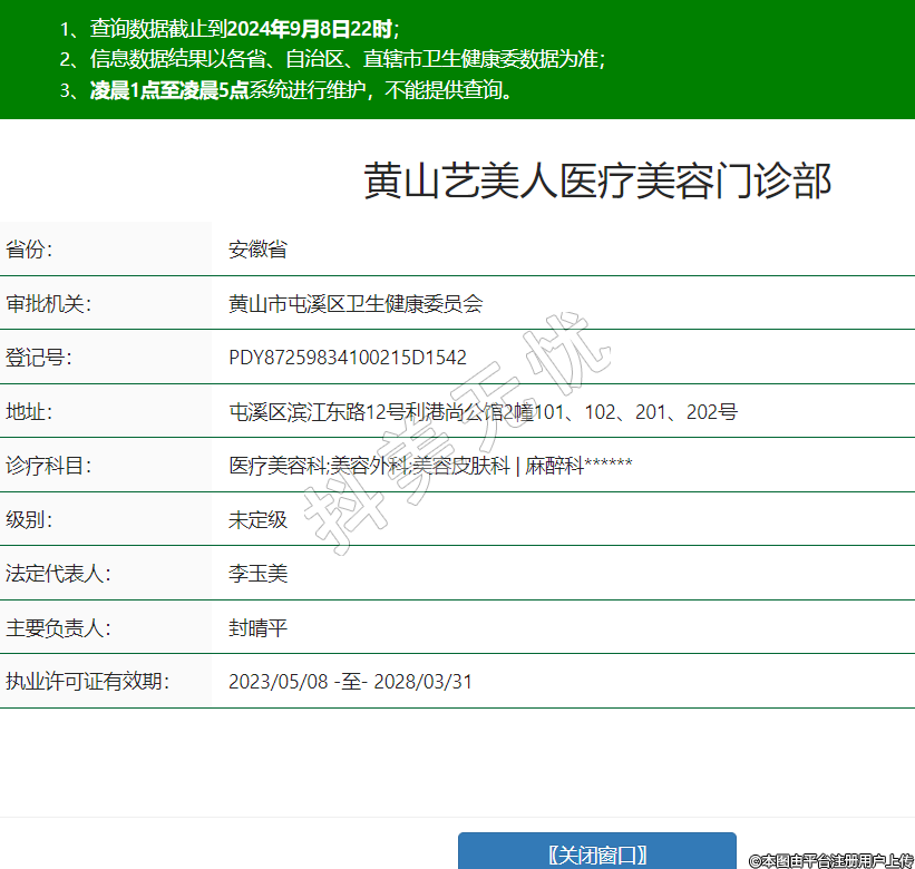 黄山艺美人医疗美容门诊部,诊疗科目:医疗美容科;美容外科;美容皮肤科 | 麻醉科******