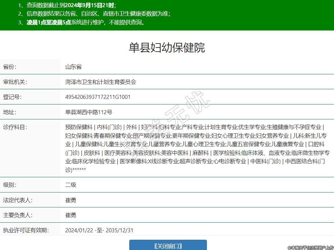 预防保健科 | 内科(门诊) | 外科 | 妇产科;妇科专业;产科专业;计划生育专业;优生学专业;生殖健康与不孕症专业 | 妇女保健科;青春期保健专业;围产期保健专业;更年期保健专业;妇女心理卫生专业;妇女营养专业 | 儿科;新生儿专业 | 儿童保健科;儿童生长发育专业;儿童营养专业;儿童心理卫生专业;儿童五官保健专业;儿童康复专业 | 口腔科(门诊) | 皮肤科 | 医疗美容科;美容皮肤科;美容中医科 | 麻醉科 | 医学检验科;临床体液、血液专业;临床微生物学专业;临床化学检验专业 | 医学影像科;X线诊断专业;超声诊断专业;心电诊断专业 | 中医科(门诊) | 中西医结合科(门诊)******