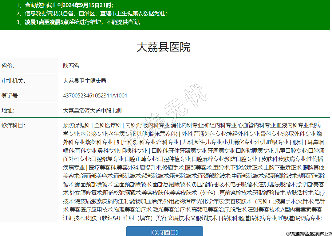 预防保健科 | 全科医疗科 | 内科;呼吸内科专业;消化内科专业;神经内科专业;心血管内科专业;血液内科专业;肾病学专业;内分泌专业;老年病专业;其他(临床营养科) | 外科;普通外科专业;神经外科专业;骨科专业;泌尿外科专业;胸外科专业;烧伤科专业 | 妇产科;妇科专业;产科专业 | 儿科;新生儿专业;小儿消化专业;小儿呼吸专业 | 眼科 | 耳鼻咽喉科;耳科专业;鼻科专业;咽喉科专业 | 口腔科;牙体牙髓病专业;牙周病专业;口腔粘膜病专业;儿童口腔专业;口腔颌面外科专业;口腔修复专业;口腔正畸专业;口腔种植专业;口腔麻醉专业;预防口腔专业 | 皮肤科;皮肤病专业;性传播疾病专业 | 医疗美容科;美容外科;眉提升术;修眉手术;眼部美容术;重睑术;下睑袋矫正术;上睑下垂矫正术;眼睑其他美容术;颌面部美容术;面部除皱术;额部除皱术;颞部除皱术;面颈部除皱术;中面部除皱术;额颞部除皱术;额颞面部除皱术;颞面颈部除皱术;全面颈部除皱术;面部悬吊除皱术;负压脂肪抽吸术;电子吸脂术;注射器法吸脂术;会阴部美容术;处女膜修复术;阴道松弛缩紧术;美容皮肤科;美容皮肤术(外科);真菌镜检技术;斑贴试验技术;皮肤活检术;治疗技术;糖皮质激素皮损内注射;药物加压治疗;外用药物治疗;光化学疗法;美容皮肤术(内科);腋臭手术;火针术;电针术;美容医疗应用技术;物理美容治疗术;激光美容治疗术;高频电美容治疗;脱毛术;注射美容技术;A型肉毒毒素美容注射技术;皮肤(软组织)注射(填充)美容;文眉技术;文眼线技术 | 传染科;肠道传染病专业;呼吸道传染病专业;肝炎专业;动物源性传染病专业 | 肿瘤科 | 急诊医学科 | 康复医学科 | 麻醉科 | 疼痛科 | 重症医学科 | 医学检验科;临床体液、血液专业;临床微生物学专业;临床化学检验专业;临床免疫、血清学专业;其他(临床基因扩增实验室) | 病理科 | 医学影像科;X线诊断专业;CT诊断专业;磁共振成像诊断专业;超声诊断专业;心电诊断专业;脑电及脑血流图诊断专业;介入放射学专业 | 中医科;内科专业;外科专业;皮肤科专业;骨伤科专业;老年病科专业;针灸科专业;推拿科专业;康复医学专业;预防保健科专业******