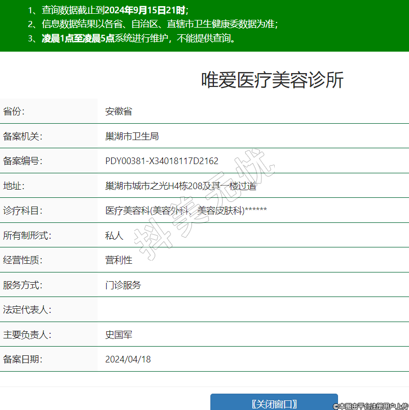 唯爱医疗美容诊所,诊疗科目:医疗美容科(美容外科、美容皮肤科)******