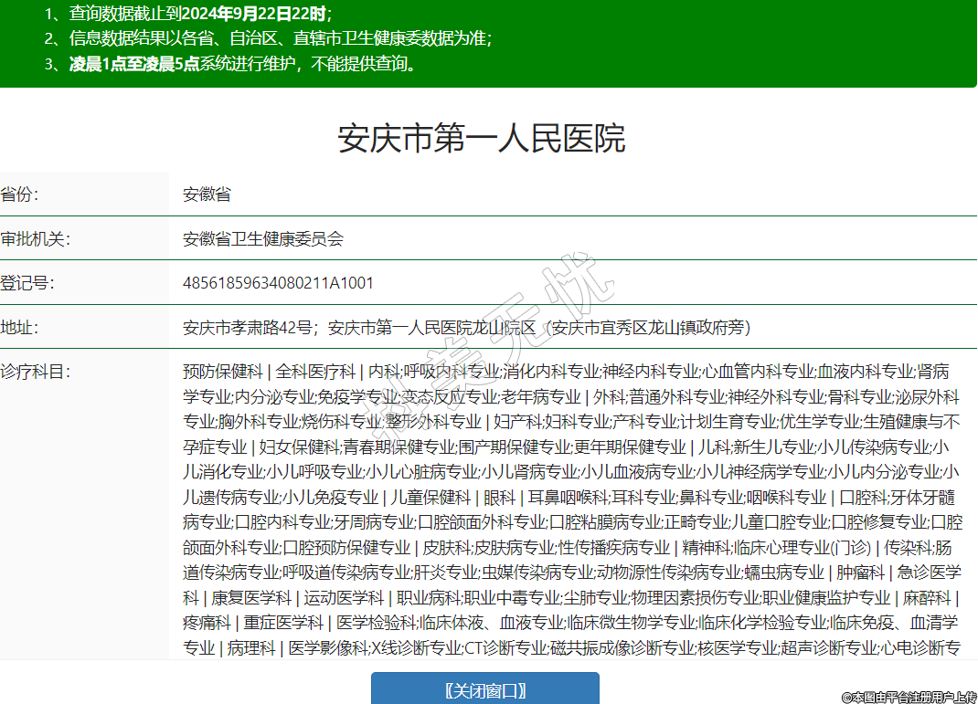 安庆市孝肃路42号;安庆市第一人民医院龙山院区(安庆市宜秀区龙山镇政府旁)