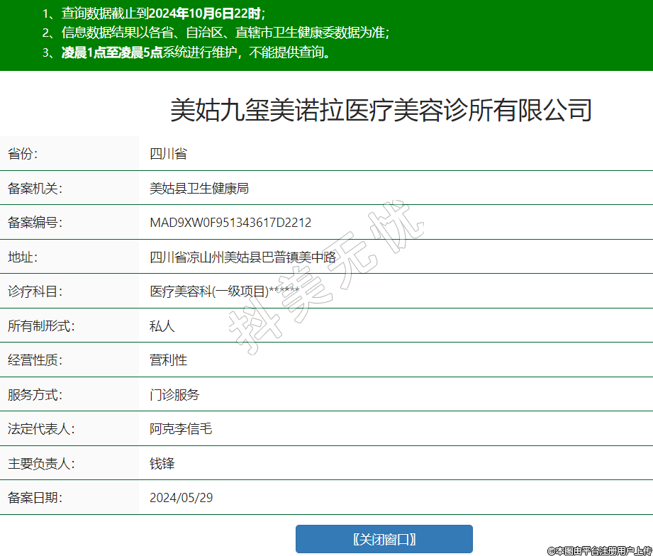 美姑九玺美诺拉医疗美容诊所有限公司,诊疗科目:医疗美容科(一级项目)******