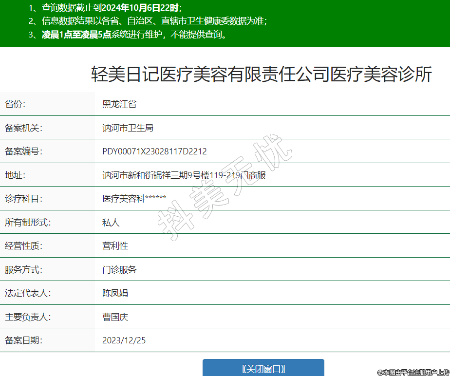 轻美日记医疗美容有限责任公司医疗美容诊所,诊疗科目:医疗美容科******