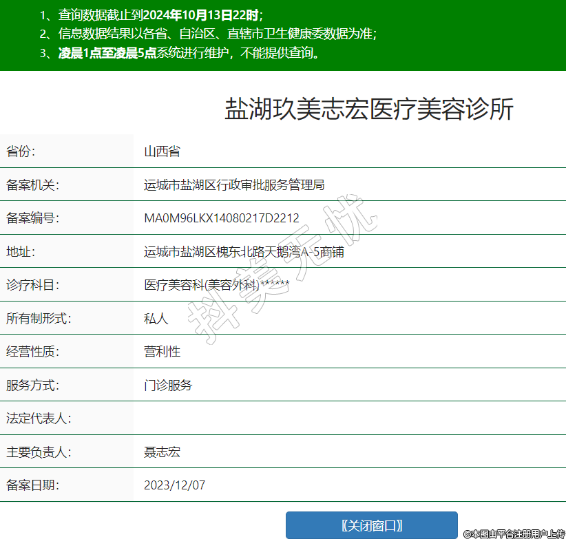 盐湖玖美志宏医疗美容诊所成立于2021-09-09,位于山西省运城市盐湖区槐东北路天鹅湾A-5商铺。