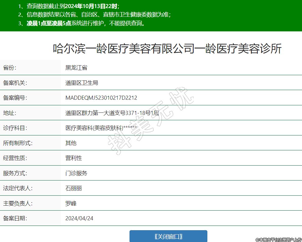 哈尔滨一龄医疗美容有限公司一龄医疗美容诊所,诊疗科目:医疗美容科(美容皮肤科)******