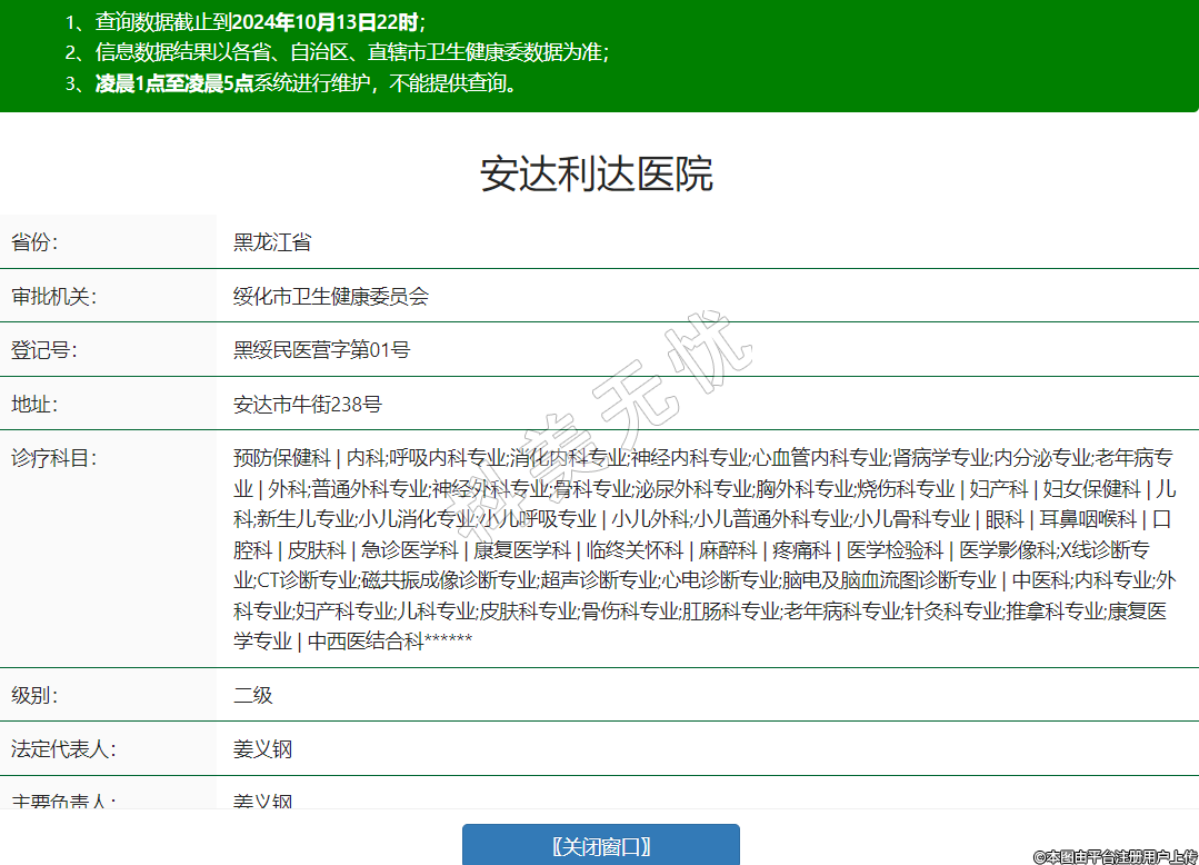 预防保健科 | 内科;呼吸内科专业;消化内科专业;神经内科专业;心血管内科专业;肾病学专业;内分泌专业;老年病专业 | 外科;普通外科专业;神经外科专业;骨科专业;泌尿外科专业;胸外科专业;烧伤科专业 | 妇产科 | 妇女保健科 | 儿科;新生儿专业;小儿消化专业;小儿呼吸专业 | 小儿外科;小儿普通外科专业;小儿骨科专业 | 眼科 | 耳鼻咽喉科 | 口腔科 | 皮肤科 | 急诊医学科 | 康复医学科 | 临终关怀科 | 麻醉科 | 疼痛科 | 医学检验科 | 医学影像科;X线诊断专业;CT诊断专业;磁共振成像诊断专业;超声诊断专业;心电诊断专业;脑电及脑血流图诊断专业 | 中医科;内科专业;外科专业;妇产科专业;儿科专业;皮肤科专业;骨伤科专业;肛肠科专业;老年病科专业;针灸科专业;推拿科专业;康复医学专业 | 中西医结合科******