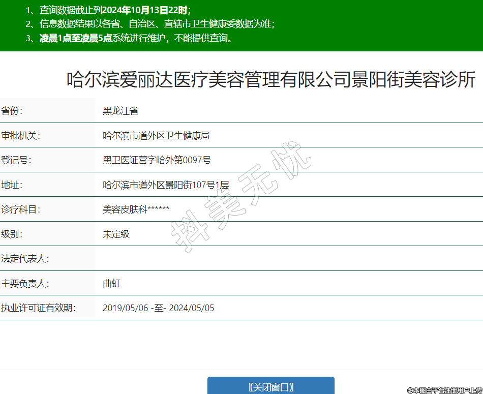 哈尔滨爱丽达医疗美容管理有限公司景阳街美容诊所,诊疗科目:美容皮肤科******