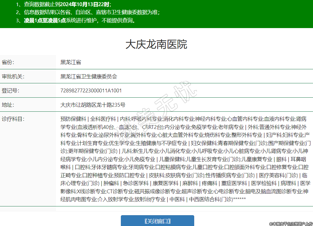预防保健科 | 全科医疗科 | 内科;呼吸内科专业;消化内科专业;神经内科专业;心血管内科专业;血液内科专业;肾病学专业(血液透析机40台、血滤5台、CRRT2台);内分泌专业;免疫学专业;老年病专业 | 外科;普通外科专业;神经外科专业;骨科专业;泌尿外科专业;胸外科专业;心脏大血管外科专业;烧伤科专业;整形外科专业 | 妇产科;妇科专业;产科专业;计划生育专业;优生学专业;生殖健康与不孕症专业 | 妇女保健科;青春期保健专业(门诊);围产期保健专业(门诊);更年期保健专业(门诊) | 儿科;新生儿专业;小儿消化专业;小儿呼吸专业;小儿心脏病专业;小儿肾病专业;小儿神经病学专业;小儿内分泌专业;小儿免疫专业 | 儿童保健科;儿童生长发育专业(门诊);儿童康复专业 | 眼科 | 耳鼻咽喉科 | 口腔科;牙体牙髓病专业;牙周病专业;口腔粘膜病专业;儿童口腔专业;口腔颌面外科专业;口腔修复专业;口腔正畸专业;口腔种植专业;预防口腔专业 | 皮肤科;皮肤病专业(门诊);性传播疾病专业(门诊) | 医疗美容科(门诊) | 临床心理专业(门诊) | 肿瘤科 | 急诊医学科 | 康复医学科 | 麻醉科 | 疼痛科 | 重症医学科 | 医学检验科 | 病理科 | 医学影像科;X线诊断专业;CT诊断专业;磁共振成像诊断专业;超声诊断专业;心电诊断专业;脑电及脑血流图诊断专业;神经肌肉电图专业;介入放射学专业;放射治疗专业 | 中医科 | 中西医结合科(门诊)******