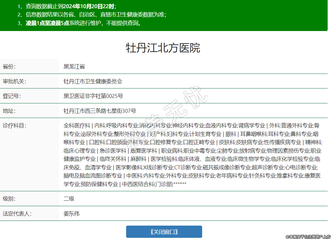 全科医疗科 | 内科;呼吸内科专业;消化内科专业;神经内科专业;血液内科专业;肾病学专业 | 外科;普通外科专业;骨科专业;泌尿外科专业;整形外科专业 | 妇产科;妇科专业;计划生育专业 | 眼科 | 耳鼻咽喉科;耳科专业;鼻科专业;咽喉科专业 | 口腔科;口腔颌面外科专业;口腔修复专业;口腔正畸专业 | 皮肤科;皮肤病专业;性传播疾病专业 | 精神科;临床心理专业 | 急诊医学科 | 康复医学科 | 职业病科;职业中毒专业;尘肺专业;放射病专业;物理因素损伤专业;职业健康监护专业 | 临终关怀科 | 麻醉科 | 医学检验科;临床体液、血液专业;临床微生物学专业;临床化学检验专业;临床免疫、血清学专业 | 医学影像科;X线诊断专业;CT诊断专业;磁共振成像诊断专业;超声诊断专业;心电诊断专业;脑电及脑血流图诊断专业 | 中医科;内科专业;外科专业;皮肤科专业;老年病科专业;针灸科专业;推拿科专业;康复医学专业;预防保健科专业 | 中西医结合科(门诊部)******