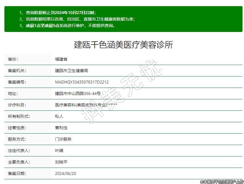 建瓯千色涵美医疗美容诊所于2024年成立,位于建瓯市中山西路366-44号。千色涵美医疗美容将秉承以求美者为中心,以安全为核心,以服务为重心的理念扎实工作,坚守“厚德、品质、守则、平安”的核心文化,坚持以质量为本,诚信为守,关爱为怀的宗旨真诚的让每一位求美者得到舒心的照顾,让求美者满意,政府放心,力争做医疗美容机构的标杆。