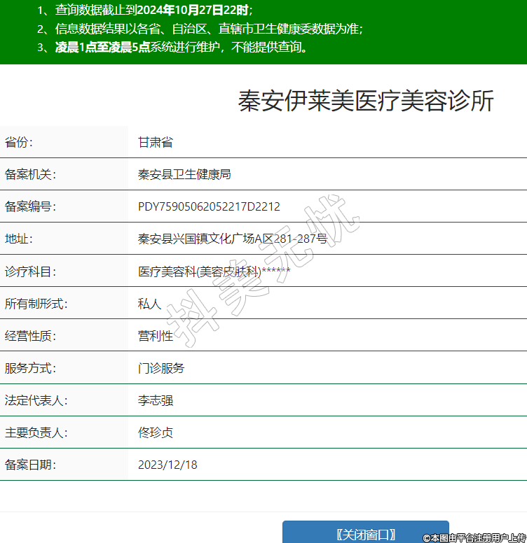 秦安伊莱美医疗美容诊所,诊疗科目:医疗美容科(美容皮肤科)******