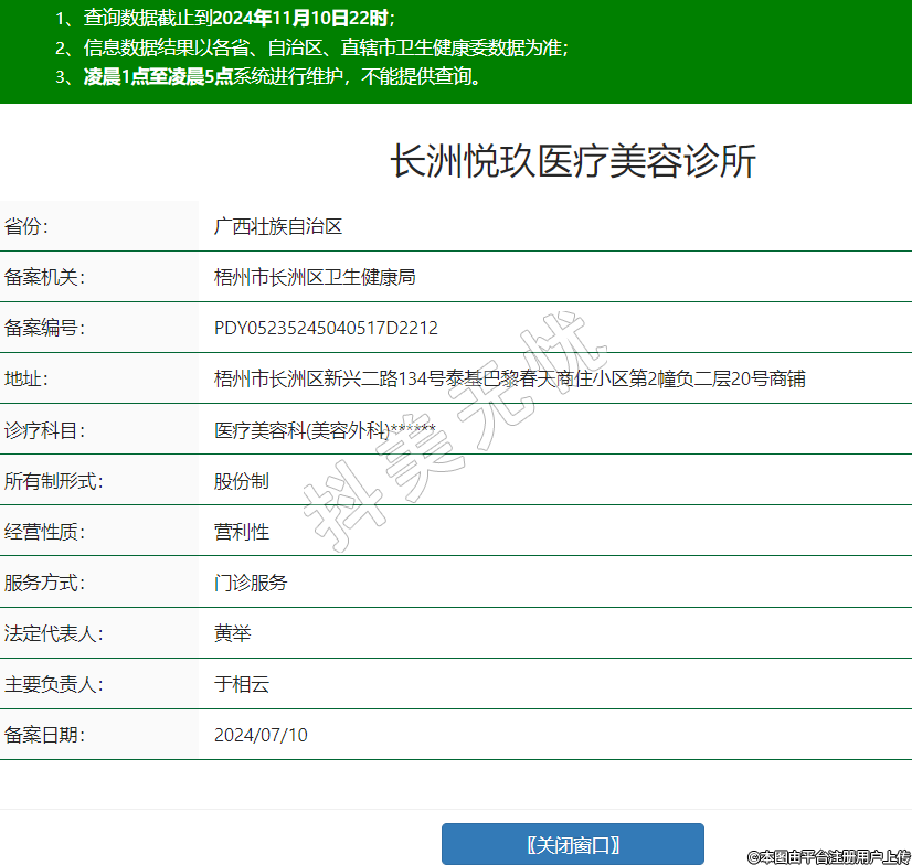 长洲悦玖医疗美容诊所,诊疗科目:医疗美容科(美容外科)******