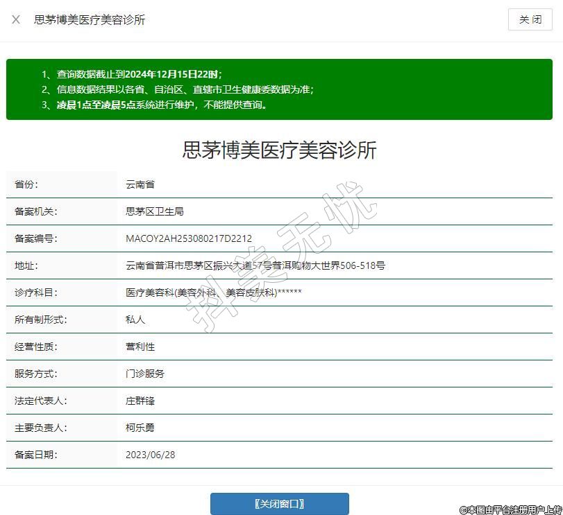 普洱思茅博美医疗美容诊所是博美医疗美容连锁机构在云南省普洱市设立的一家正规医疗美容诊所,经过当地卫生部门的批准和备案。