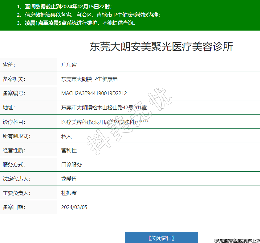 东莞大朗安美聚光医疗美容诊所,诊疗科目:医疗美容科(仅限开展美容皮肤科)******
