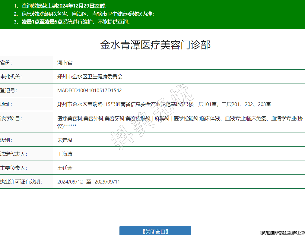 金水青潭医疗美容门诊部,诊疗科目:医疗美容科;美容外科;美容牙科;美容皮肤科 | 麻醉科 | 医学检验科;临床体液、血液专业;临床免疫、血清学专业(协议)******
