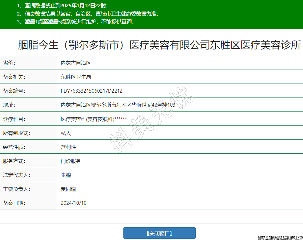 胭脂今生(鄂尔多斯市)医疗美容有限公司东胜区医疗美容诊所,诊疗科目:医疗美容科(美容皮肤科)******