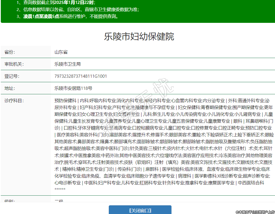 预防保健科 | 内科;呼吸内科专业;消化内科专业;神经内科专业;心血管内科专业;内分泌专业 | 外科;普通外科专业;泌尿外科专业 | 妇产科;妇科专业;产科专业;生殖健康与不孕症专业 | 妇女保健科;青春期保健专业;围产期保健专业;更年期保健专业;妇女心理卫生专业;妇女营养专业 | 儿科;新生儿专业;小儿传染病专业;小儿消化专业;小儿肾病专业 | 儿童保健科;儿童生长发育专业;儿童营养专业;儿童心理卫生专业;儿童五官保健专业;儿童康复专业 | 眼科 | 耳鼻咽喉科(门诊) | 口腔科;牙体牙髓病专业;牙周病专业;口腔粘膜病专业;儿童口腔专业;口腔修复专业;口腔正畸专业;预防口腔专业 | 医疗美容科;美容外科(门诊);眉部美容术;眉提升术;修眉手术;眼部美容术;重睑术;下睑袋矫正术;上睑下垂矫正术;眼睑其他美容术;鼻部美容术;隆鼻术;颞部填充术;面部除皱术;额部除皱术;颞部除皱术;脂肪抽吸及腹壁成形术;负压脂肪抽吸术;超声脂肪抽吸术;美容中医科(门诊);针灸美容;三棱针术;皮内针术;火针术;电针术;水针(穴位注射)术;炙术;耳针术;拔罐术;中医推拿美容;中药外治;其他中医美容技术;穴位埋线疗法;美容医疗应用技术;冷冻美容治疗;其他物理美容治疗;脱毛术;穿耳孔术;注射美容技术;皮肤(软组织)注射(填充)美容;美容文饰技术;文眉技术;文眼线技术;文唇技术 | 精神科;精神卫生专业(门诊) | 传染科(门诊) | 麻醉科 | 医学检验科;临床体液、血液专业;临床微生物学专业;临床化学检验专业;临床免疫、血清学专业;临床细胞分子遗传学专业 | 病理科 | 医学影像科;X线诊断专业;超声诊断专业;心电诊断专业 | 中医科;妇产科专业;儿科专业;肛肠科专业;针灸科专业;推拿科专业;康复医学专业 | 中西医结合科******