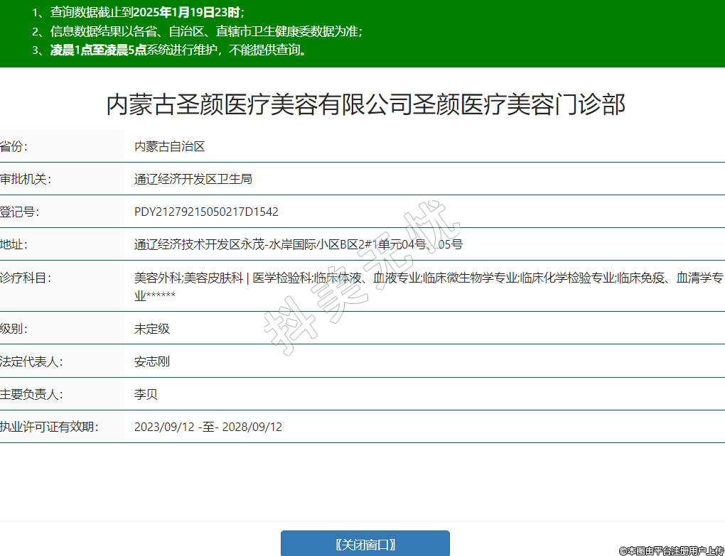 内蒙古圣颜医疗美容有限公司圣颜医疗美容门诊部