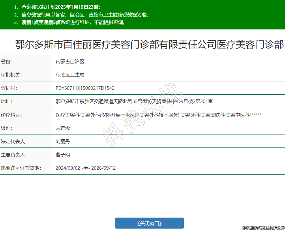 鄂尔多斯市百佳丽医疗美容门诊部有限责任公司医疗美容门诊部