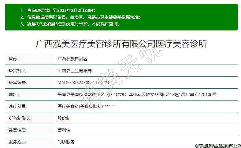 贵港泓美医疗美容诊所成立于2024年,地处于贵港市平南县平南街道龙祥小区(D-1地块)龚州新天地文华园B区12幢1层12单元120106号。泓美医疗美容人性化的环境设计,优雅舒适,细微之处尽显尊重、关怀与贴心,独有的一站式造美服务和贵宾级个性化服务,满足爱美人士的极致美丽追求。