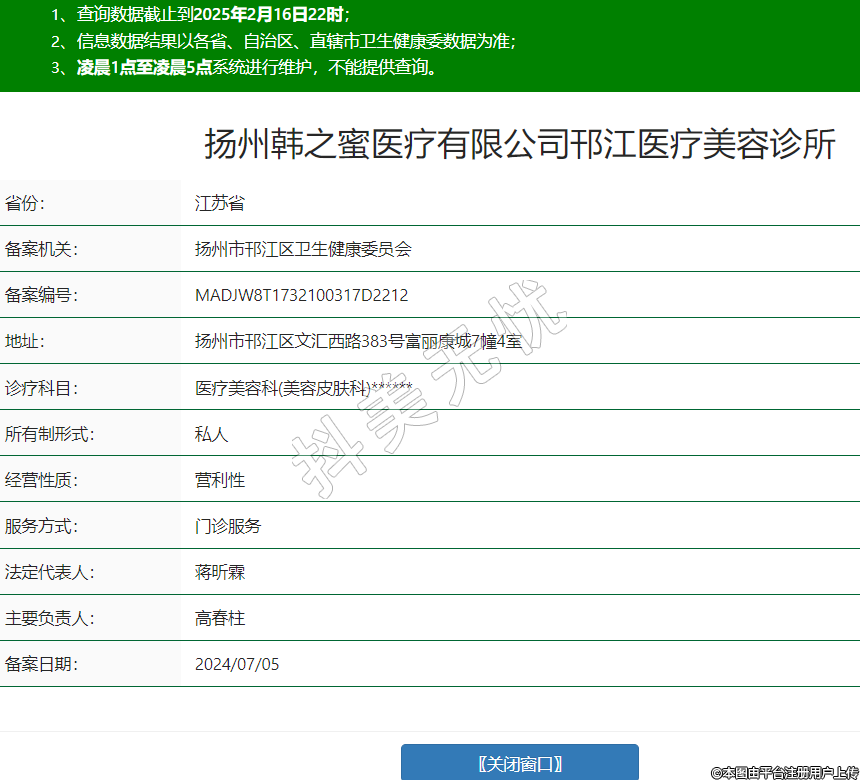 扬州韩之蜜医疗有限公司邗江医疗美容诊所,诊疗科目:医疗美容科(美容皮肤科)******