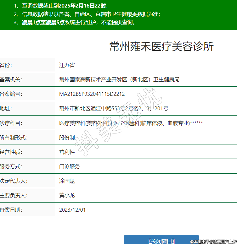 常州雍禾医疗美容诊所,诊疗科目 医疗美容科(美容外科) | 医学检验科(临床体液、血液专业)******
