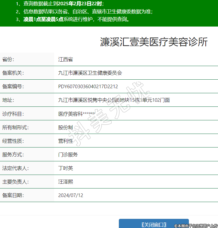 九江汇壹美医疗美容诊所成立于2023年,位于九江市濂溪区浔南大道以北、火车站南广场以西悦隽中央公园B地块15栋1单元102门面。汇壹美医疗美容实行网络化信息管理,设立了皮肤美容、注射美容、私密抗衰、光电美容等多个诊疗服务中心,为九江市广大爱美人士提供安全、高效、舒适的医疗美容服务!