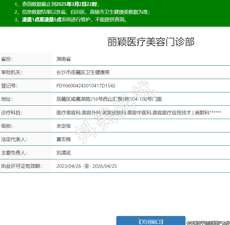 丽颖医疗美容门诊部,诊疗科目:医疗美容科;美容外科;美容皮肤科;美容中医科;美容医疗应用技术 | 麻醉科******