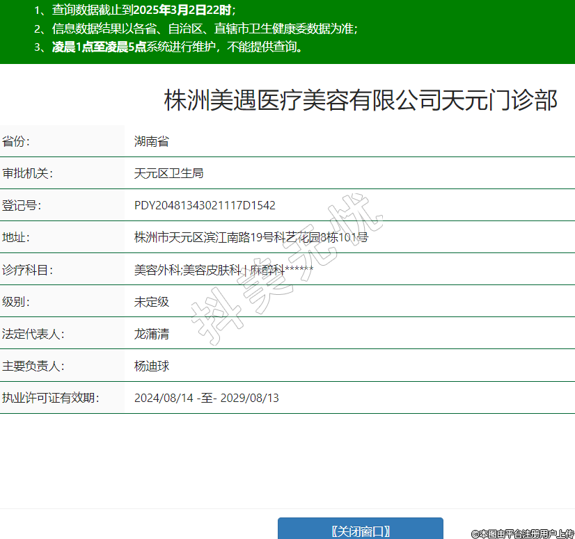 株洲美遇医疗美容有限公司天元门诊部,诊疗科目:美容外科;美容皮肤科 | 麻醉科******