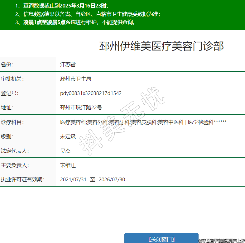 邳州伊维美医疗美容门诊部,诊疗科目:医疗美容科;美容外科;美容牙科;美容皮肤科;美容中医科 | 医学检验科******