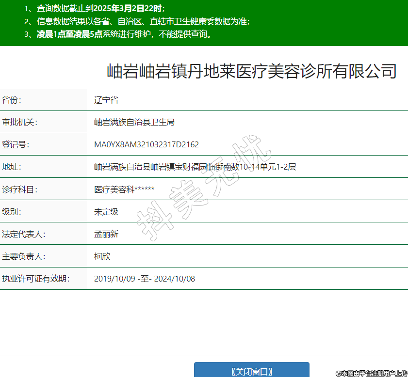 岫岩岫岩镇丹地莱医疗美容诊所有限公司,诊疗科目:医疗美容科******