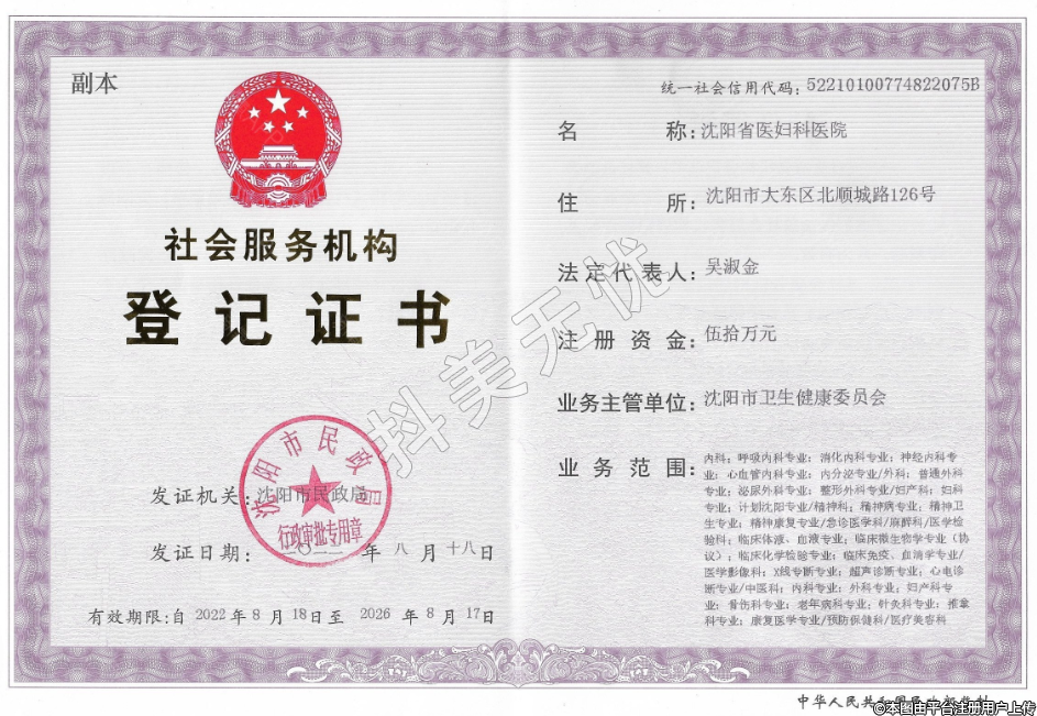 发证机关:沈阳市卫生健康委员会