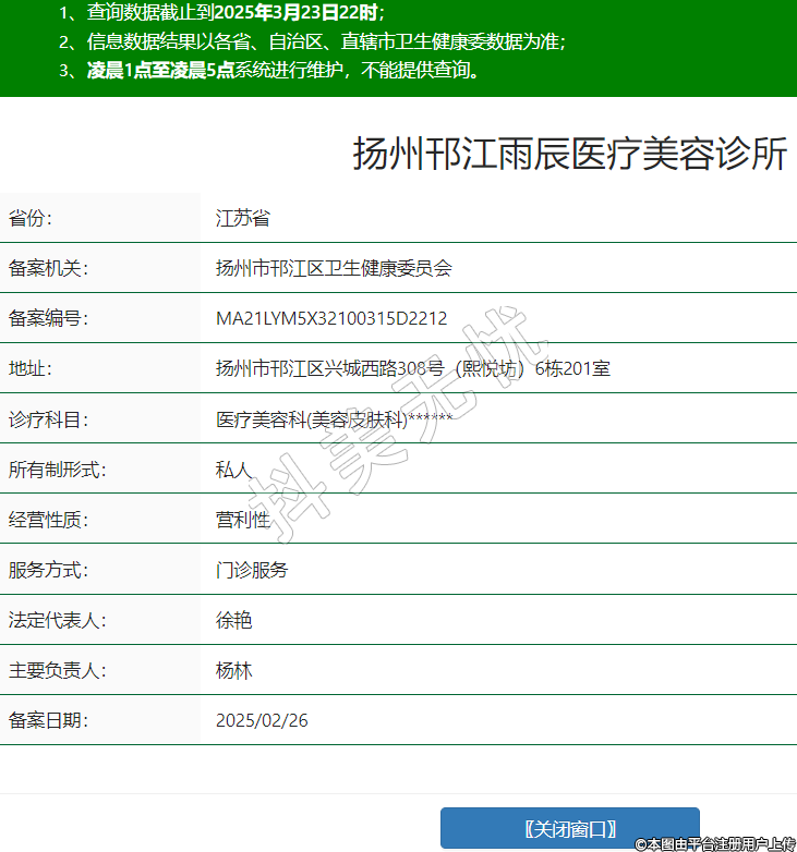 扬州邗江雨辰医疗美容诊所,诊疗科目:医疗美容科(美容皮肤科)******