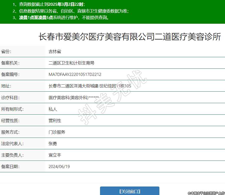 长春市爱美尔医疗美容有限公司二道医疗美容诊所,诊疗科目:医疗美容科(美容外科)******