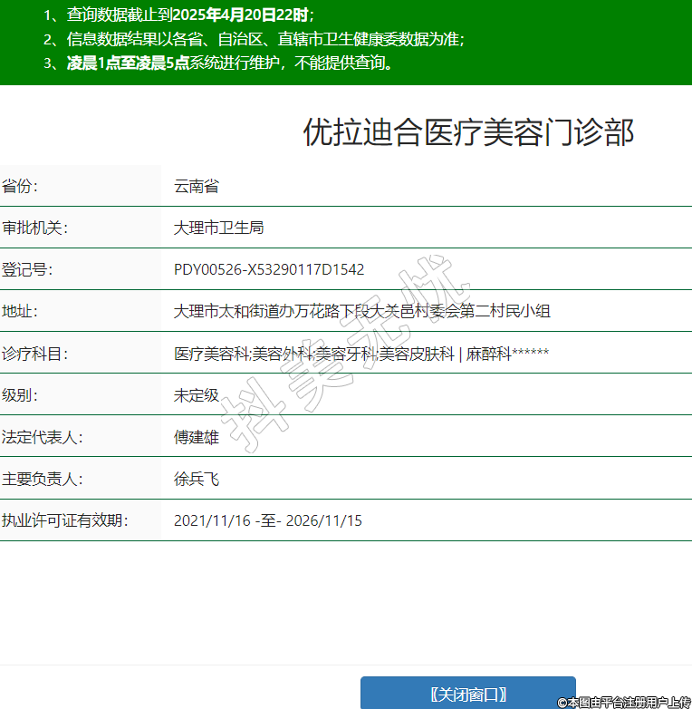 优拉迪合医疗美容门诊部,诊疗科目:医疗美容科;美容外科;美容牙科;美容皮肤科 | 麻醉科******