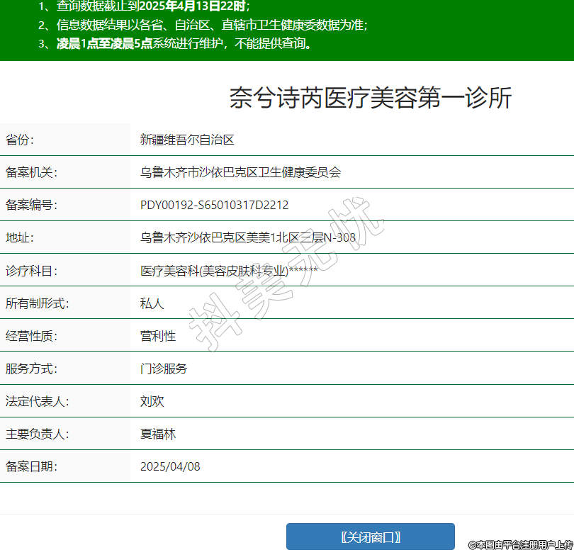 奈兮诗芮医疗美容第一诊所,诊疗科目:医疗美容科(美容皮肤科专业)******