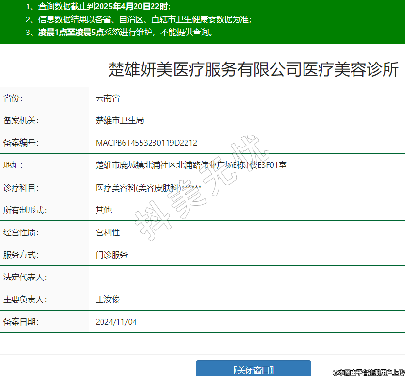 楚雄妍美医疗服务有限公司医疗美容诊所,诊疗科目:医疗美容科(美容皮肤科)******