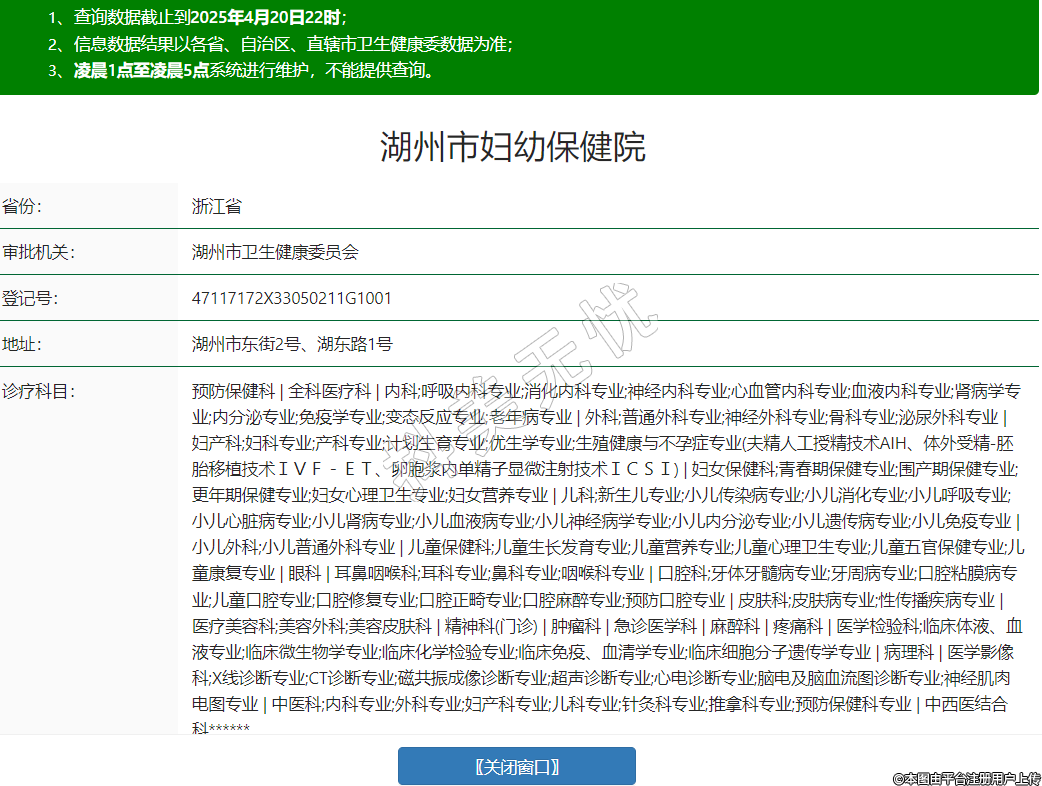 预防保健科 | 全科医疗科 | 内科;呼吸内科专业;消化内科专业;神经内科专业;心血管内科专业;血液内科专业;肾病学专业;内分泌专业;免疫学专业;变态反应专业;老年病专业 | 外科;普通外科专业;神经外科专业;骨科专业;泌尿外科专业 | 妇产科;妇科专业;产科专业;计划生育专业;优生学专业;生殖健康与不孕症专业(夫精人工授精技术AIH、体外受精-胚胎移植技术IVF-ET、卵胞浆内单精子显微注射技术ICSI) | 妇女保健科;青春期保健专业;围产期保健专业;更年期保健专业;妇女心理卫生专业;妇女营养专业 | 儿科;新生儿专业;小儿传染病专业;小儿消化专业;小儿呼吸专业;小儿心脏病专业;小儿肾病专业;小儿血液病专业;小儿神经病学专业;小儿内分泌专业;小儿遗传病专业;小儿免疫专业 | 小儿外科;小儿普通外科专业 | 儿童保健科;儿童生长发育专业;儿童营养专业;儿童心理卫生专业;儿童五官保健专业;儿童康复专业 | 眼科 | 耳鼻咽喉科;耳科专业;鼻科专业;咽喉科专业 | 口腔科;牙体牙髓病专业;牙周病专业;口腔粘膜病专业;儿童口腔专业;口腔修复专业;口腔正畸专业;口腔麻醉专业;预防口腔专业 | 皮肤科;皮肤病专业;性传播疾病专业 | 医疗美容科;美容外科;美容皮肤科 | 精神科(门诊) | 肿瘤科 | 急诊医学科 | 麻醉科 | 疼痛科 | 医学检验科;临床体液、血液专业;临床微生物学专业;临床化学检验专业;临床免疫、血清学专业;临床细胞分子遗传学专业 | 病理科 | 医学影像科;X线诊断专业;CT诊断专业;磁共振成像诊断专业;超声诊断专业;心电诊断专业;脑电及脑血流图诊断专业;神经肌肉电图专业 | 中医科;内科专业;外科专业;妇产科专业;儿科专业;针灸科专业;推拿科专业;预防保健科专业 | 中西医结合科******