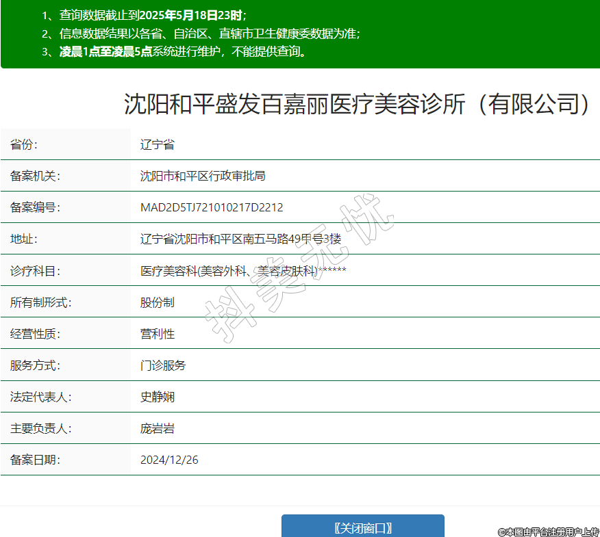 沈阳和平盛发百嘉丽医疗美容诊所(有限公司),诊疗科目:医疗美容科(美容外科、美容皮肤科)******