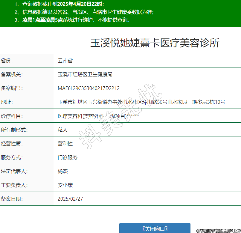玉溪悦她婕熹卡医疗美容,诊疗科目:医疗美容科(美容外科 一级项目)******
