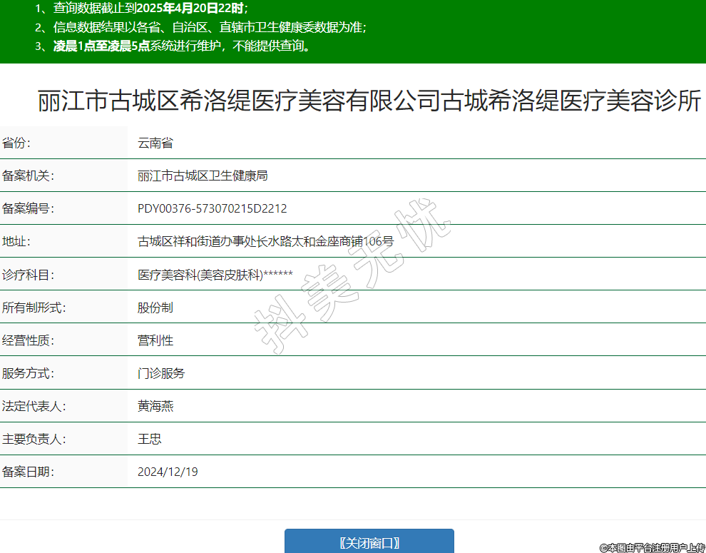 丽江市古城区希洛缇医疗美容有限公司古城希洛缇医疗美容诊所,诊疗科目:医疗美容科(美容皮肤科)******