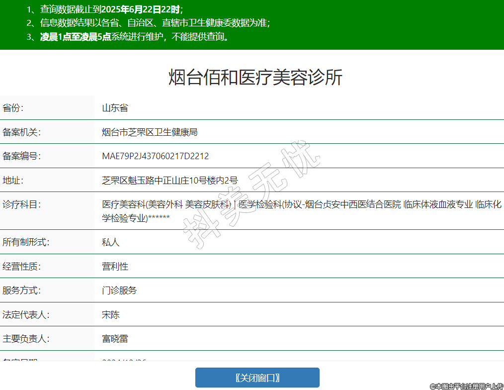 烟台佰和医疗美容诊所,诊疗科目:医疗美容科(美容外科 美容皮肤科) | 医学检验科(协议-烟台贞安中西医结合医院 临床体液血液专业 临床化学检验专业)******