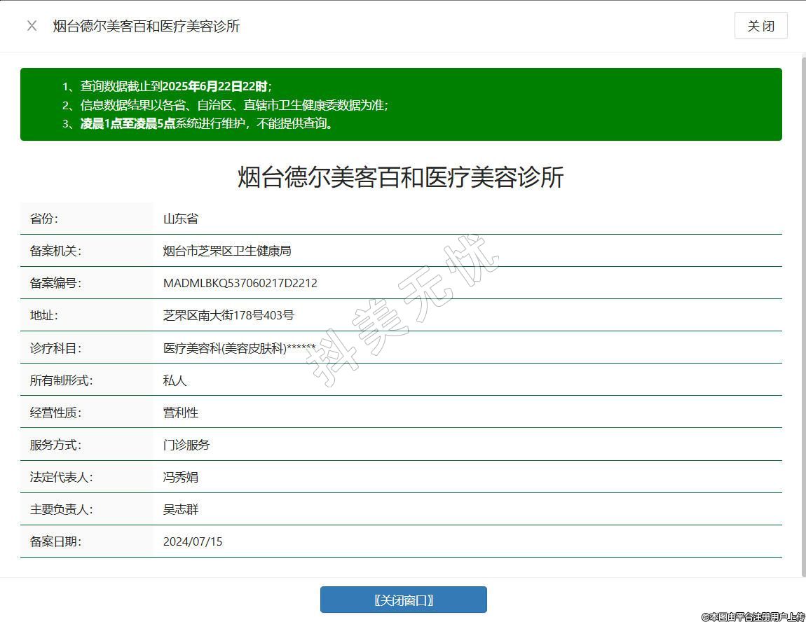 烟台德尔美客百和医疗美容诊所于2024年成立,隶属德尔美客医疗美容连锁,位于烟台市芝罘区毓璜顶街道南大街178号403号,是一家正规的医疗美容诊所。主做项目:皮肤管理、仪器抗衰、健康管理。