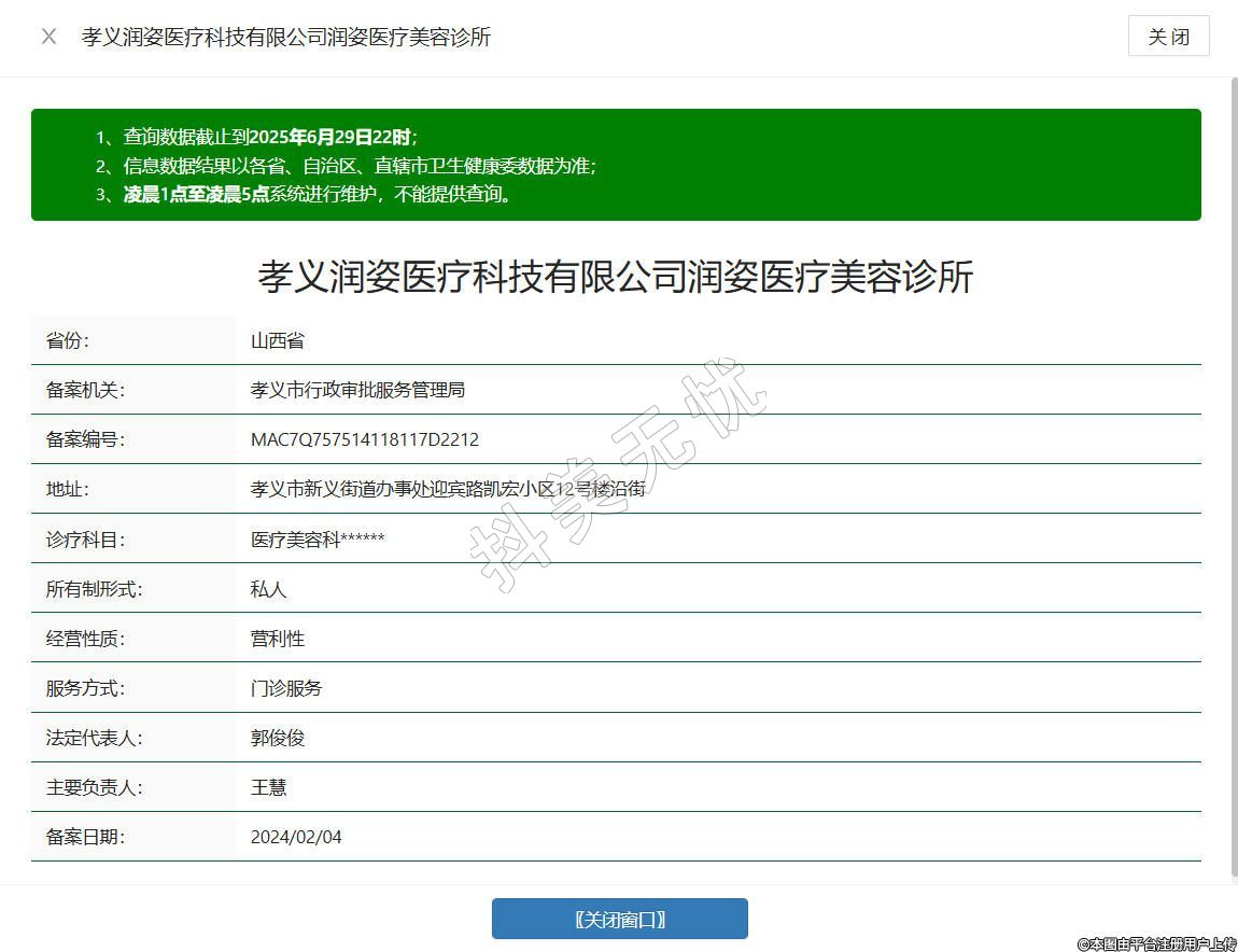 孝义润姿医疗美容诊所成立于2023年,位于孝义市新义街道办事处迎宾路凯宏小区12号楼沿街,以"专业医疗,自然焕美"为宗旨,致力于为每位求美者提供安全可靠的医疗美容服务,拥有专业医疗团队,注重个性化美学设计,采用科学规范的诊疗流程,通过专业评估和定制方案,帮助改善各类肌肤问题,让美丽由内而外自然绽放。