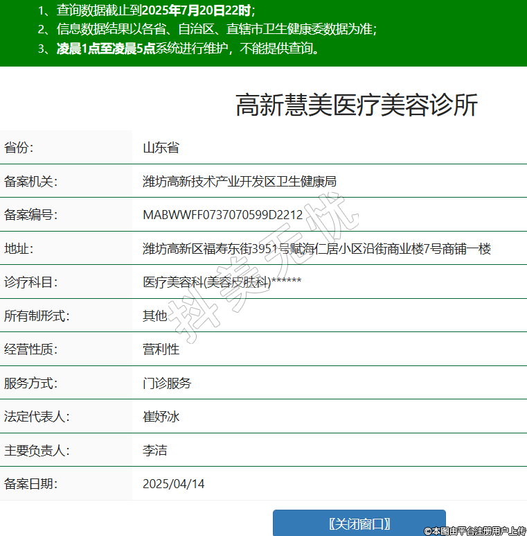 潍坊高新慧美医疗美容诊所,诊疗科目:医疗美容科(美容皮肤科)******