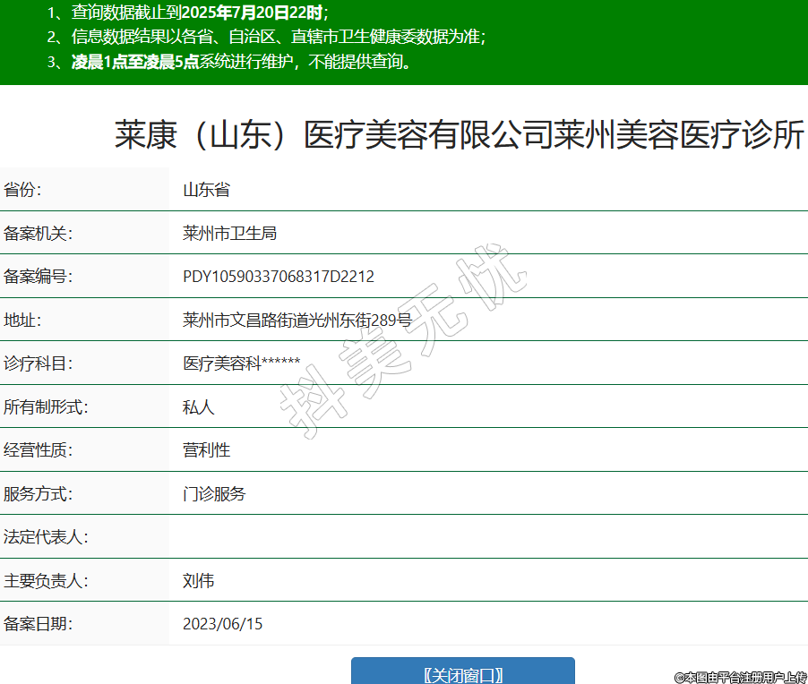 莱州莱康医疗美容诊所于2023年落址烟台莱州市文昌路街道光州东街289号,以"健康塑美"为核心理念,聚焦科学医美服务。机构依托规范医疗资质,配置数字化皮肤检测仪、射频紧肤仪等进口专业设备,开展轻医美养护、五官精调、疤痕修复等特色项目。