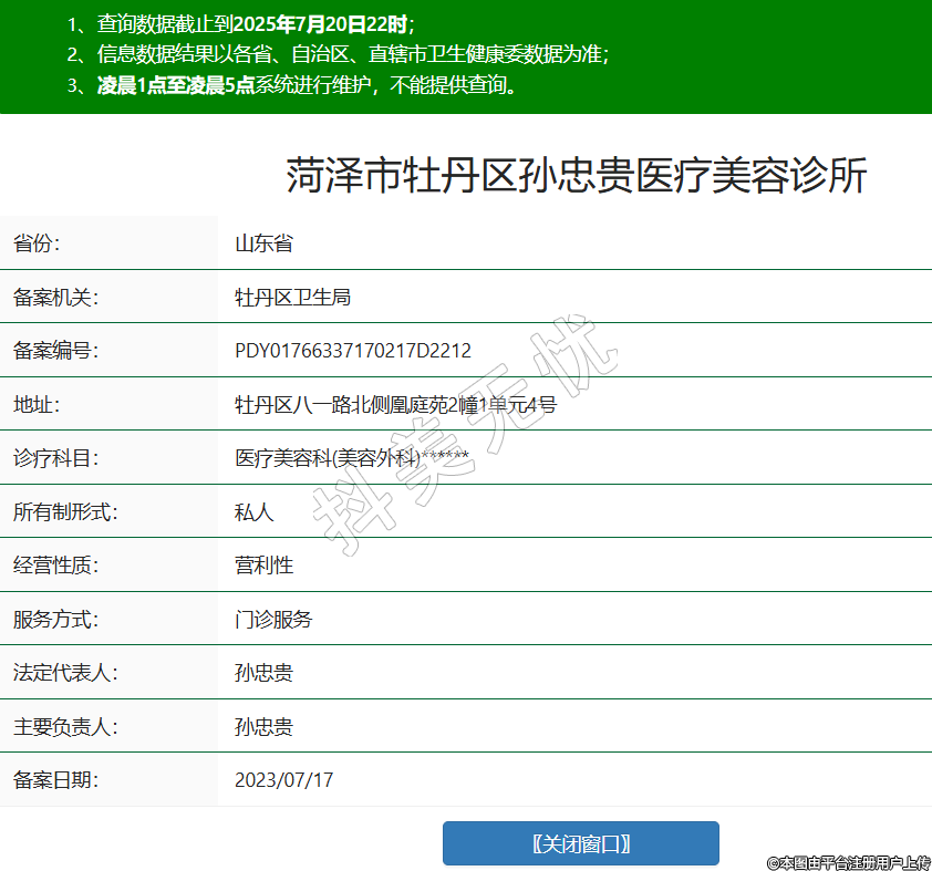 菏泽孙忠贵医疗美容诊所设立于菏泽市牡丹区八一路北侧,具体位置为凰庭苑二橦一单元4号。该诊所由孙忠贵医生在2012年创办,至今已运营十多年。孙忠贵医生作为负责人,凭借长期的专业背景和实际经验,专注于提供安全、可靠的医疗美容服务。服务内容主要包括面部整形和体型调整等常见项目,旨在帮助爱美者改善外观并增强自信心。诊所内部环境干净舒适,工作人员态度亲切,始终以爱美者满意为优先考虑。经