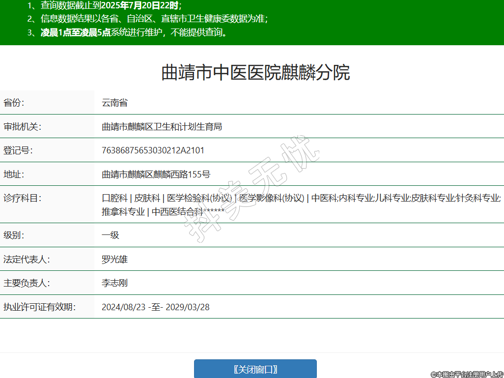 曲靖市中医医院麒麟分院,诊疗科目:口腔科 | 皮肤科 | 医学检验科(协议) | 医学影像科(协议) | 中医科;内科专业;儿科专业;皮肤科专业;针灸科专业;推拿科专业 | 中西医结合科******